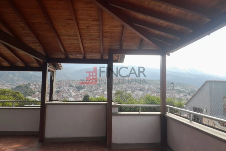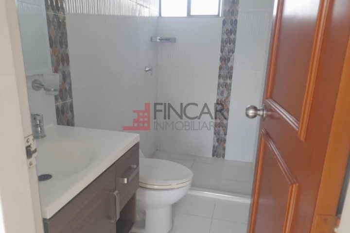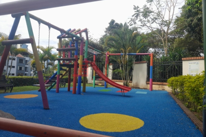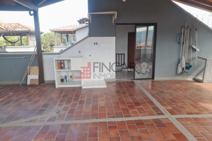 Apartamento Duplex, exterior ubicado en el quinto piso, área 96.23 metros cuadrados. Primer Nivel: Hall de recibo, sala comedor, cocina integral abierta, estudio o hall de tv, mirador, 3 habitaciones, la principal con baño, todas con closet y baño general. Gradas a Segundo Nivel: estudio, habitación pequeña, terraza con pérgola y zona de ropas.